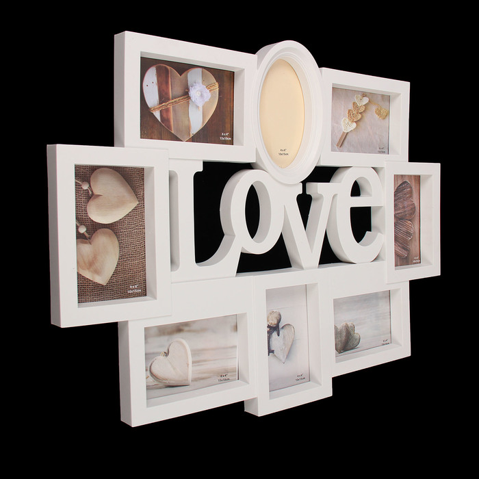 Фоторамка пластик на 8 фото 10х15 см "Моя любовь" белая 47х60 см