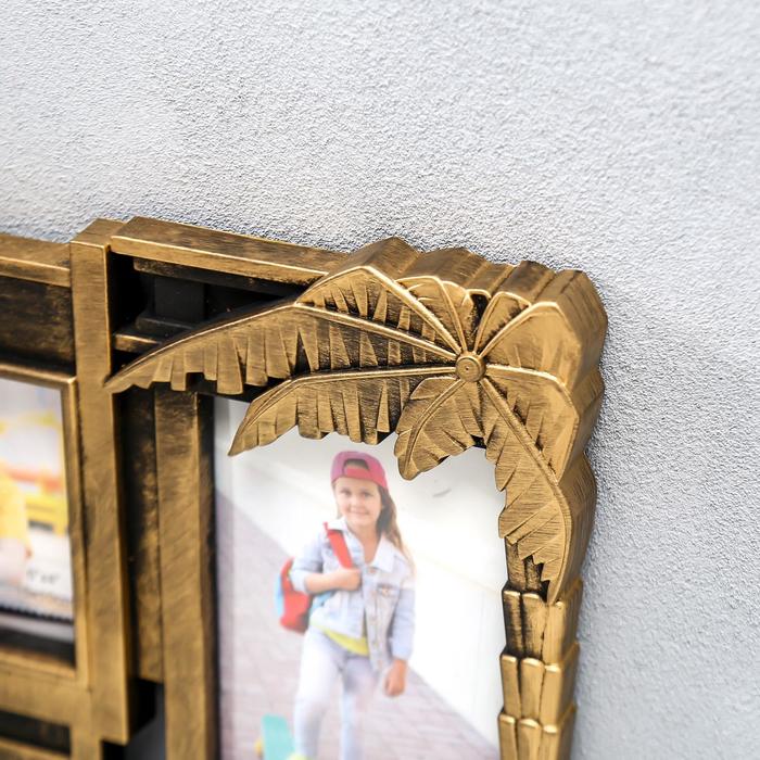 Фоторамка пластик на 9 фото 10х10, 10х15 см "Домик у моря" тёмное золото 36,5х67х2 см