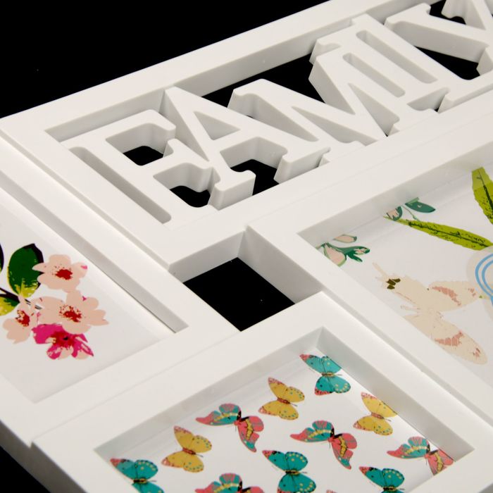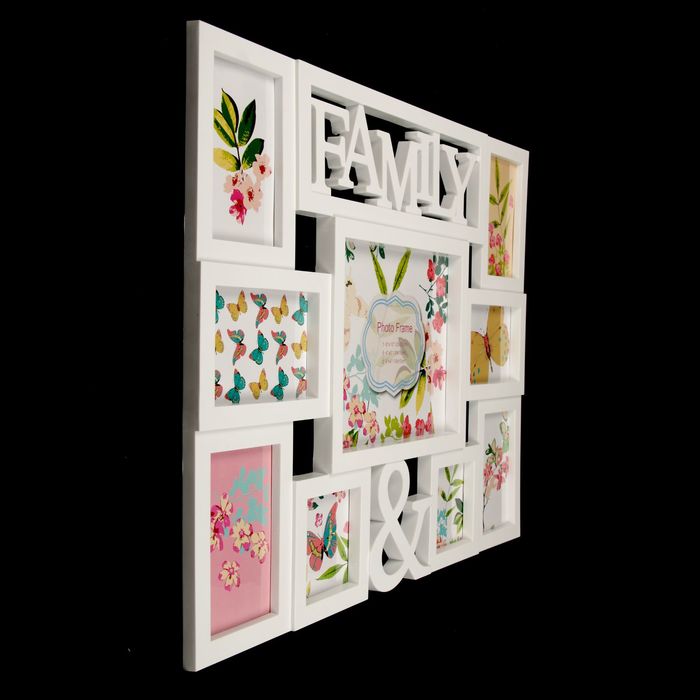 Фоторамка пластик на 9 фото 10х10 см 10х15 см 20х25 см "СемьЯ" белая 47,5х62,5 см