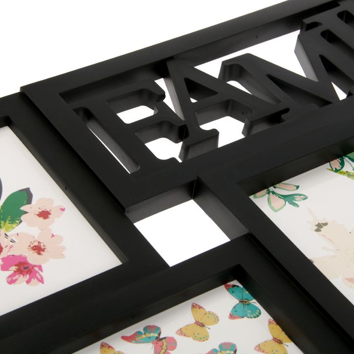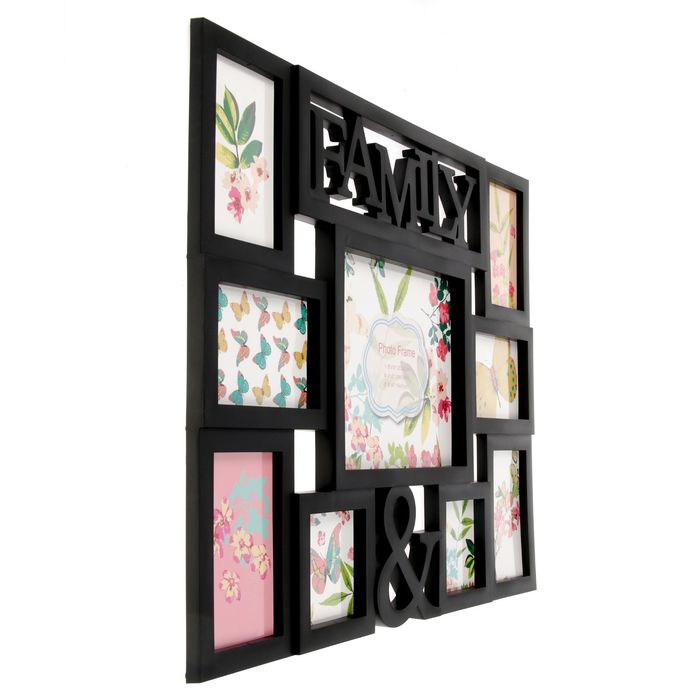 Фоторамка пластик на 9 фото 10х10 см 10х15 см 20х25 см "СемьЯ" чёрная 47,5х62,5 см
