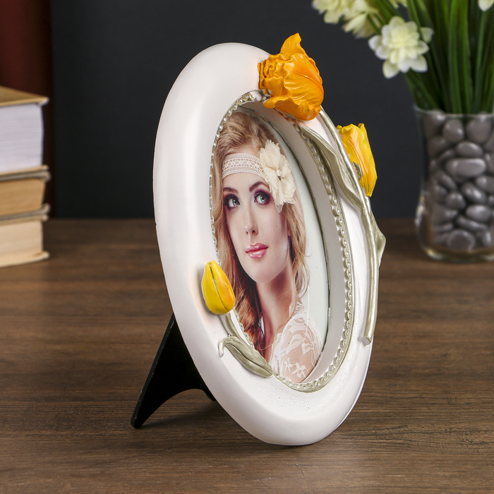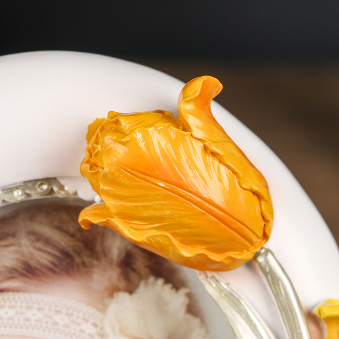 Фоторамка полистоун 10х15 см "Тюльпаны" белая 19х16х2,5 см