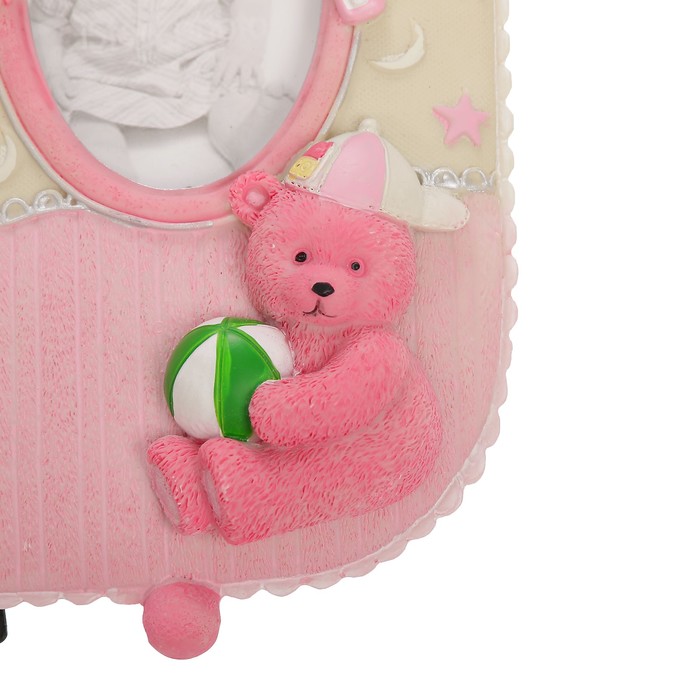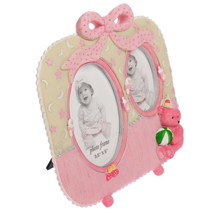 Фоторамка полистоун на 2 фото 7х9, 9х13 см "Детская. Малыш с мячиком" розовая 21,5х22 см