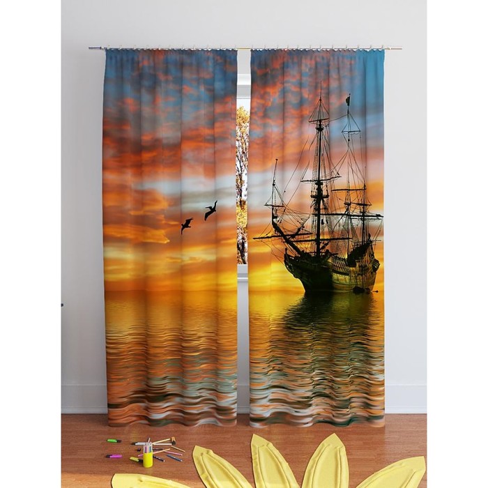 Фотошторы "Гангут", размер 150х260 см - 2 шт, блэкаут