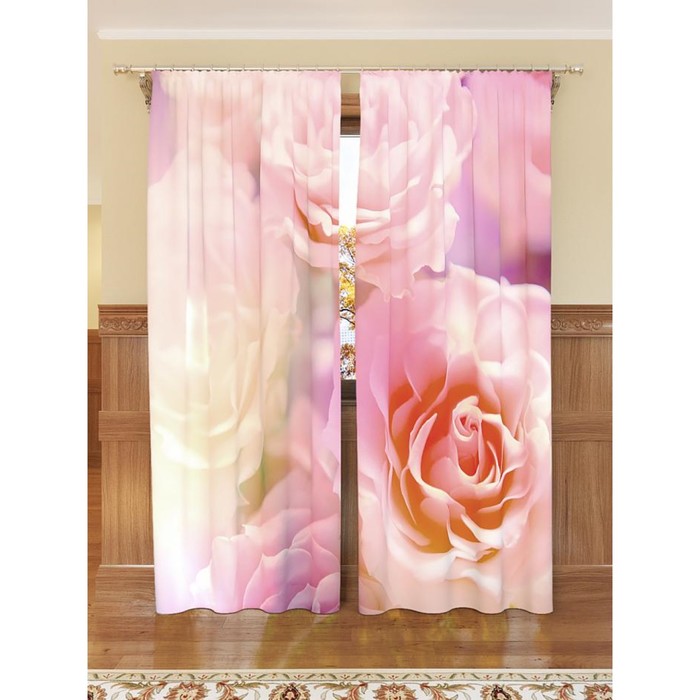 Фотошторы "Розовые розы", размер 150х260 см - 2 шт, блэкаут