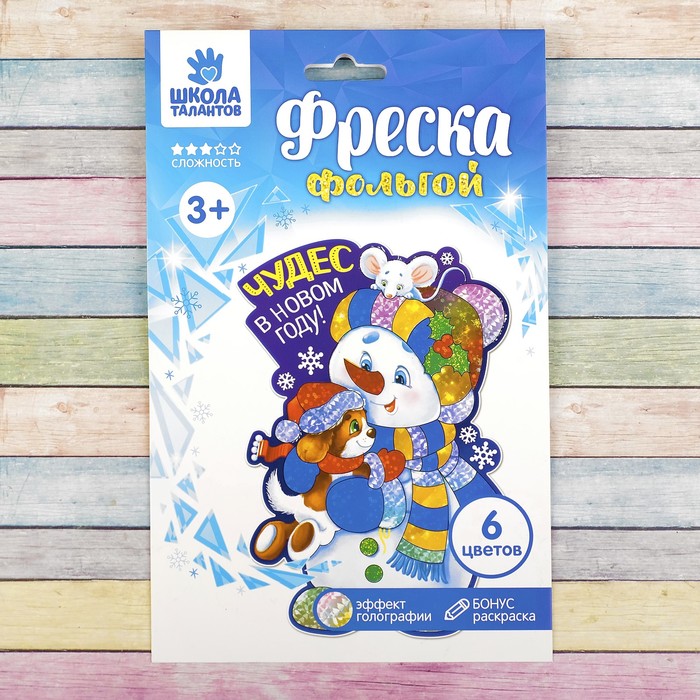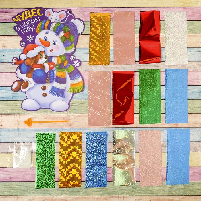 Фреска цветной фольгой "Чудес в Новом году!" Снеговик+ стека, блестки 2 гр