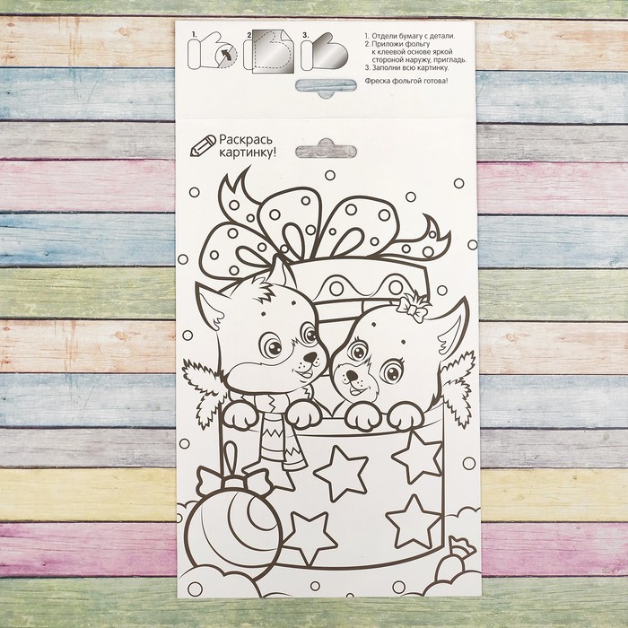 Создание фресок — увлекательный вид творчества, который понравится каждому ребёнку. Клеевая основа защищена специальным слоем бумаги, куда нанесены прорезные контуры. Каждый цвет находится в своей зоне: отделяйте верхний слой с помощью стеки и оформляйте элементы фольгой согласно инструкции из набора.