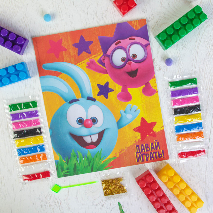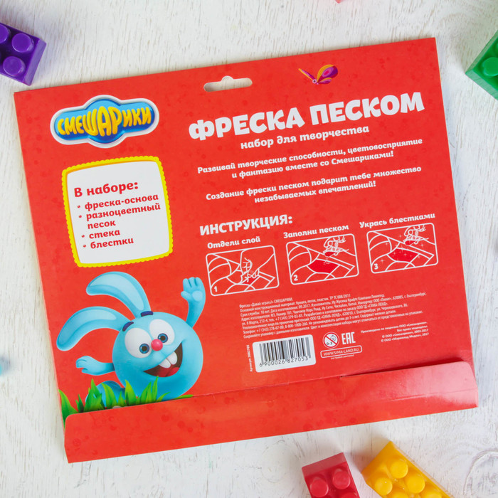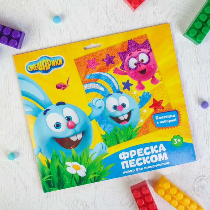 Фреска "Давай играть!" СМЕШАРИКИ: блестками 1 цв. 2 гр,стека, песок 9 цв по 4 гр
