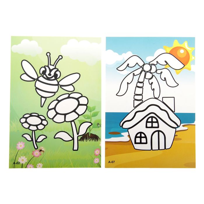 Фреска фольгой - оборот раскраска "Домик и пчелка"