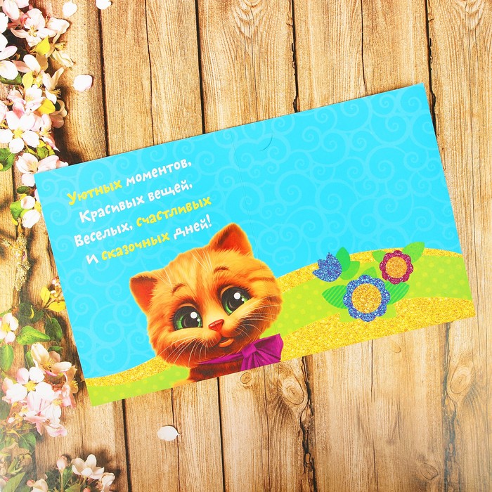 Фреска-открытка со стразами "Поздравляю!", котик