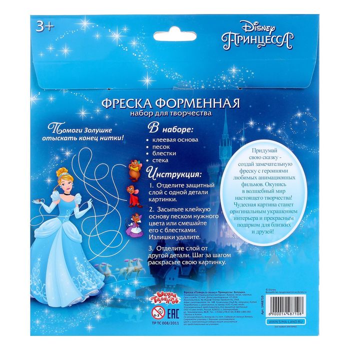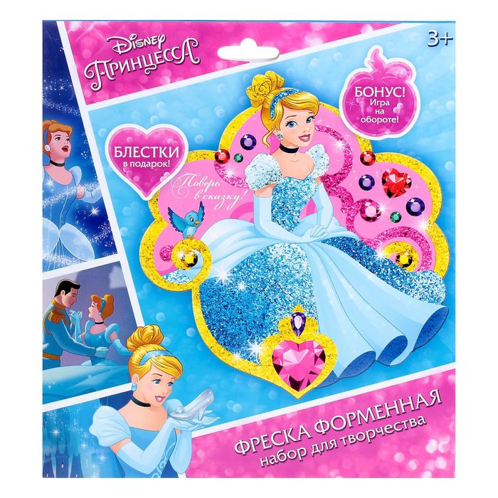 Фреска песком (9 цветов) и блёстками "Поверь в сказку", Принцессы: Золушка, бонус: игра