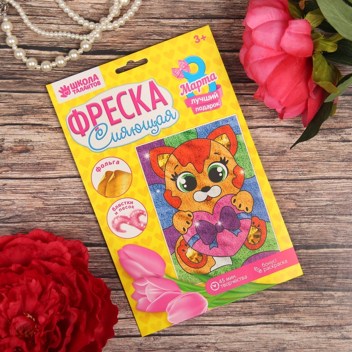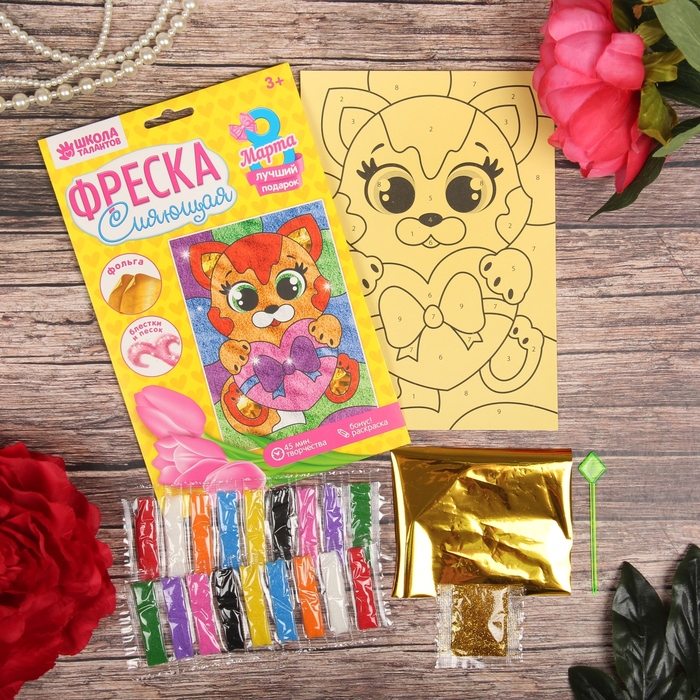 Может быть, именно такой необычный товар, как Фреска песком с блёстками и фольгой "Котик", раскроет неожиданные способности у вашего ребёнка. И даже если он не станет новым Рафаэлем, то ему, определённо, обеспечена богатая фантазия, креативное мышление и золотые руки.