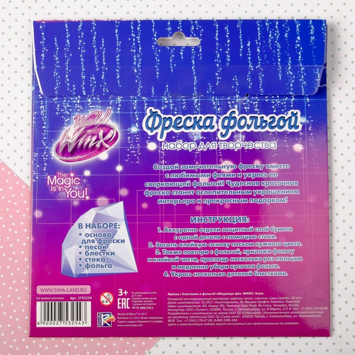 Фреска с блестками и фольгой "Модница" феи ВИНКС: Блум + 9 цв песка 4 гр, блестки 2 гр