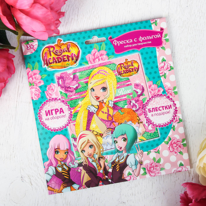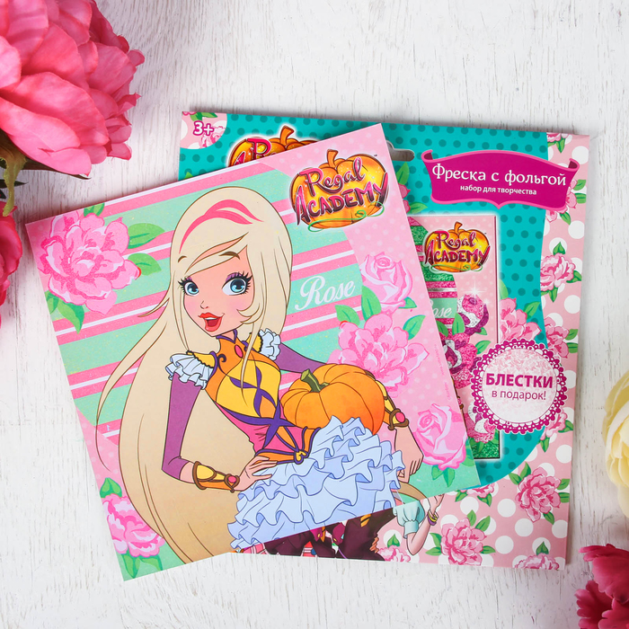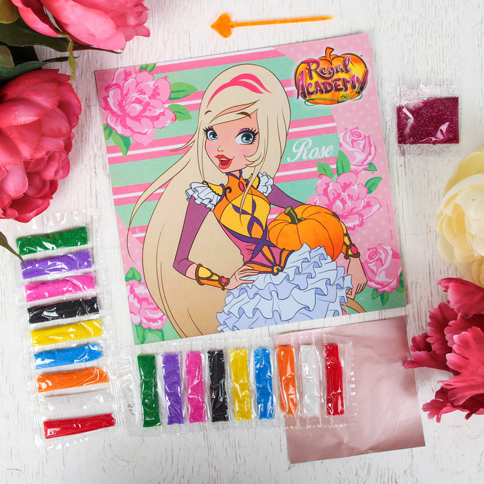 Фреска с блестками и фольгой "Роуз" Королевская Академия + 9 цв песка по 4 гр, блестки 2 гр