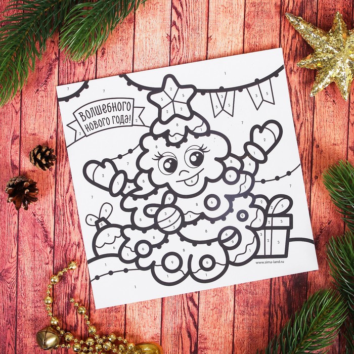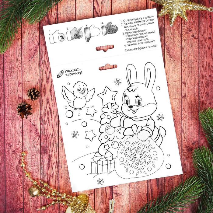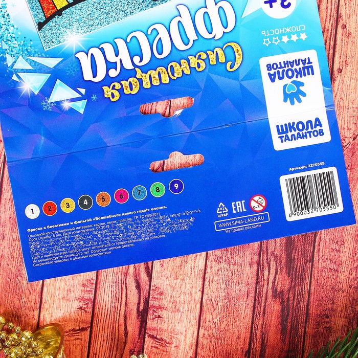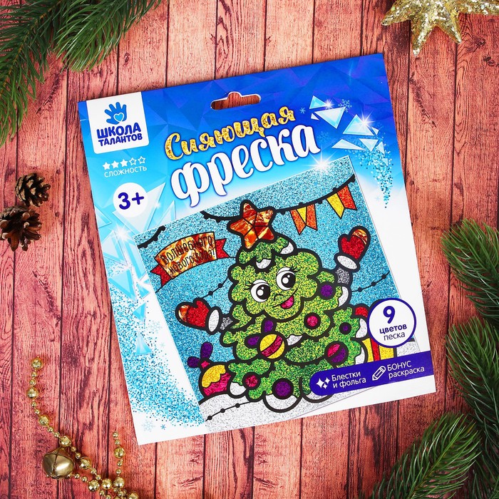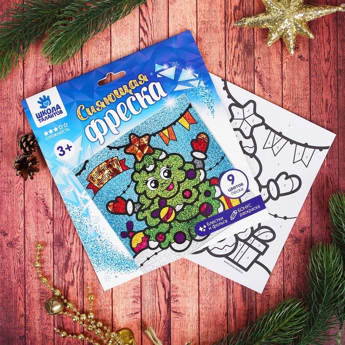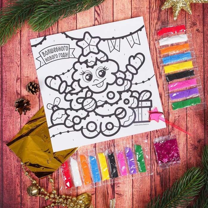 Фреска с блестками и фольгой "Волшебного нового года!" Елочка + 9 цветов песка, блестки 2 гр
