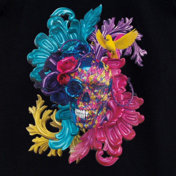 Футболка украшена оригинальным и, что очень важно, качественным принтом, который отлично переносит многочисленные испытания стиральной машинкой.