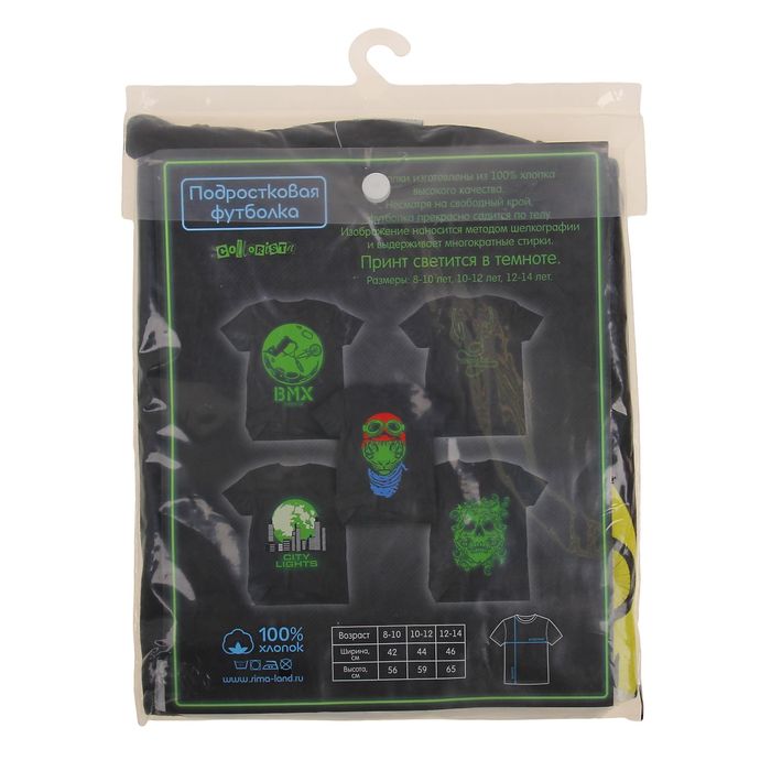 Футболка украшена оригинальным принтом, который светится в темноте.