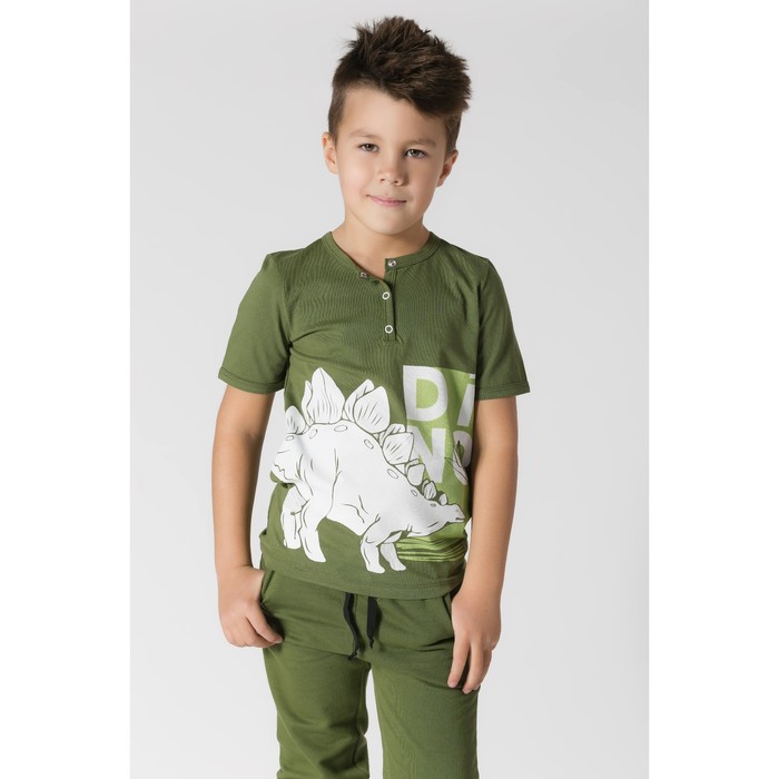 Футболка "Дино", хаки, р-р 36 (134-140см) 9-10л 100% хл