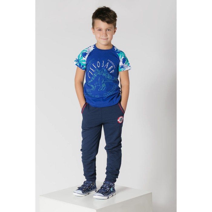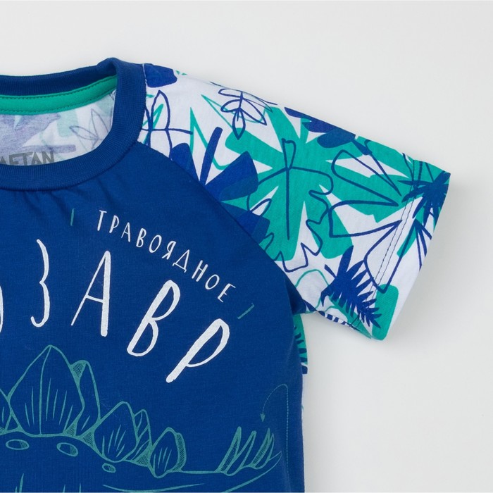 Футболка "Динозавр", индиго, р-р 34 (122-128см) 7-8л 100% хл
