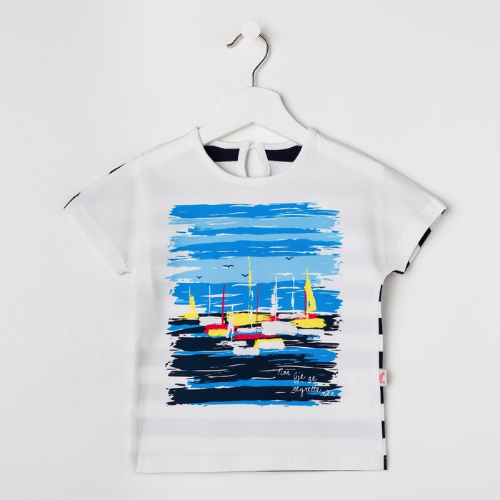 Футболка для девочки "Дорога к морю", рост 116 см (60), цвет белый, принт парусники ДДК344804 23724