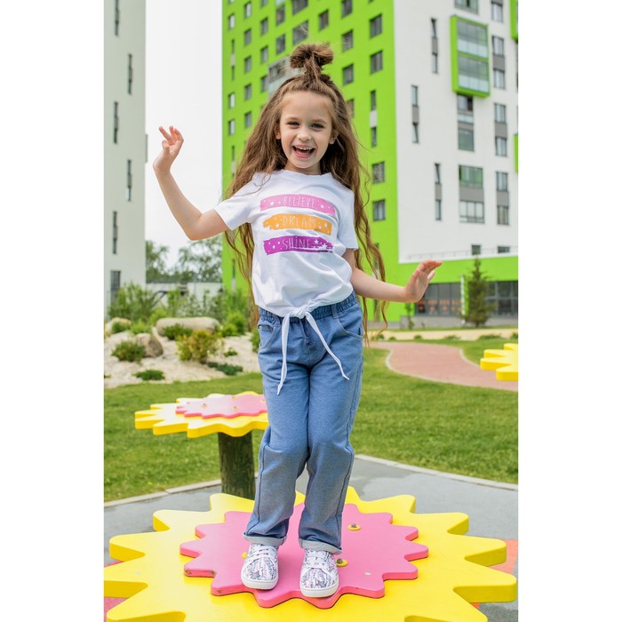 Футболка для девочки MINAKU "Believe, dream, shine", рост 110-116 см, цвет белый