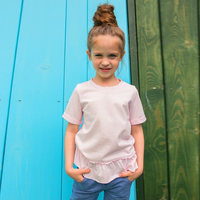 Футболка для девочки MINAKU "Рюши", вид 2, рост 122-128 см, цвет розовый