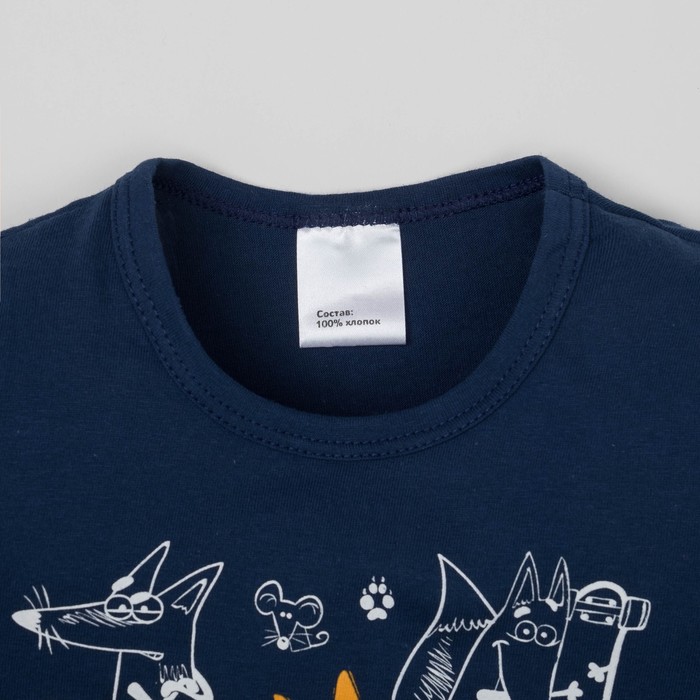 Футболка эконом "Лис", синяя, р-р 34 (122-128см) 7-8л., 100% хлопок