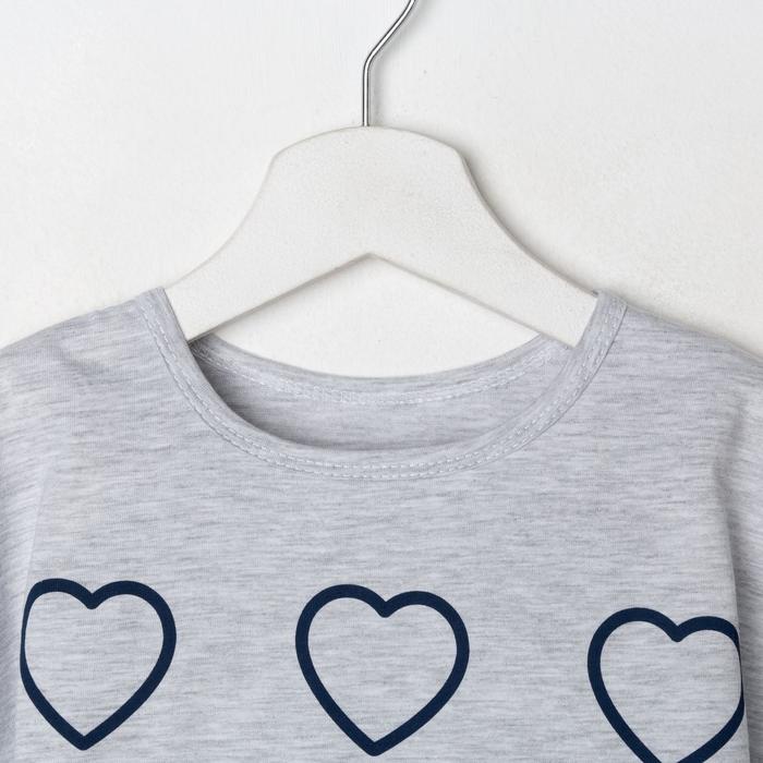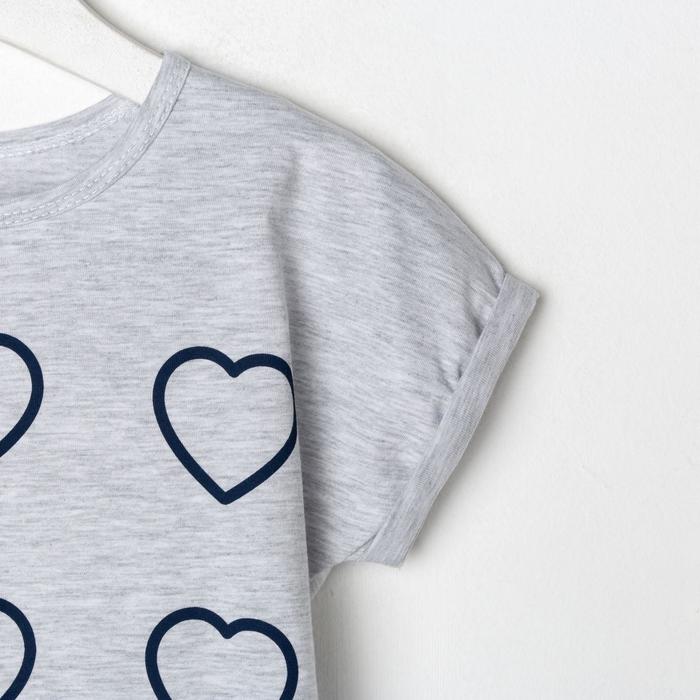 Футболка "Сердца", серая, р-р 36 (134-140 см) 9-10 лет, 95% хл., 5% эл.