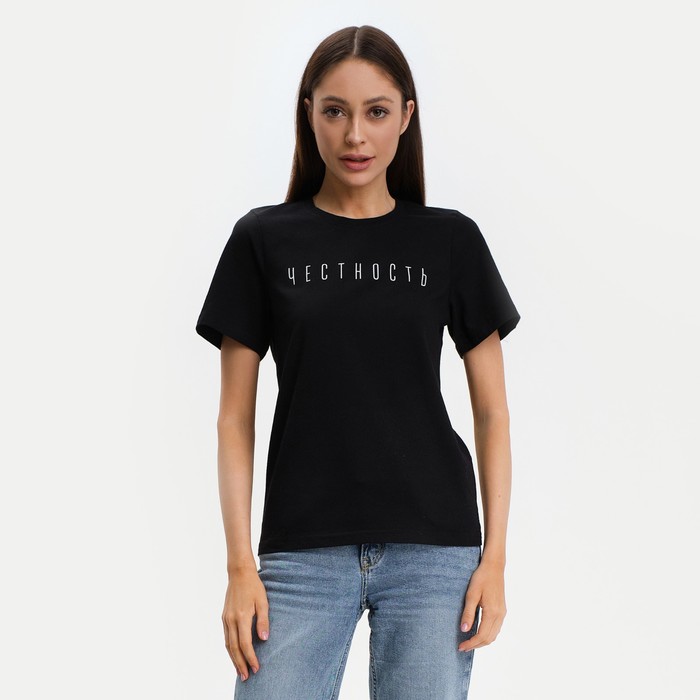 Футболка женская KAFTAN "Честность", черный, р-р 44-46, 92% хл. 8% эл.