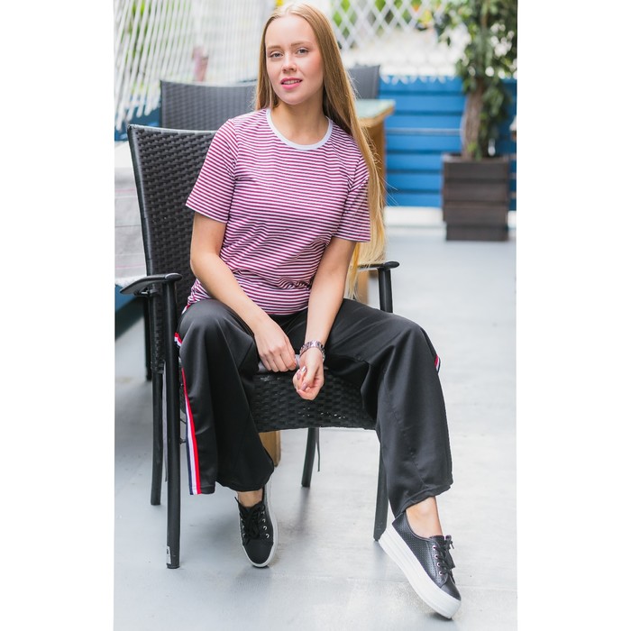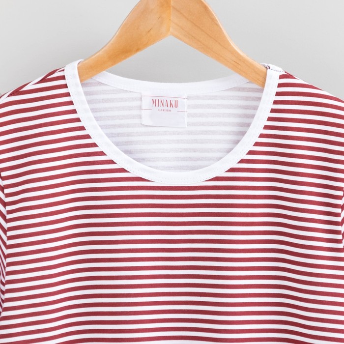 Футболка женская MINAKU, круглый вырез, размер 48, цвет красная полоска