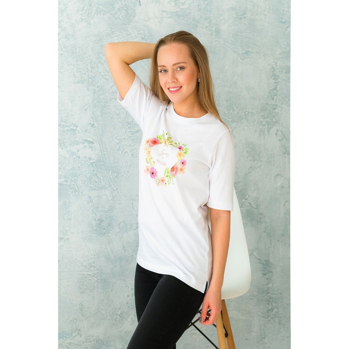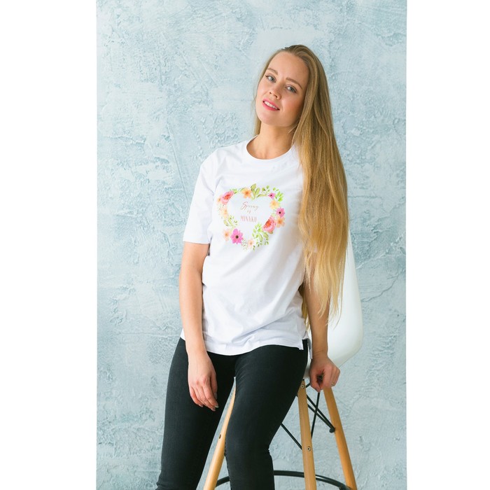 Футболка женская удлиненная MINAKU, "Spring", размер 46, цвет белый