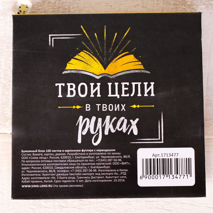 Футляр для бумаги с карандашом "Твои цели в твоих руках", 100 листов