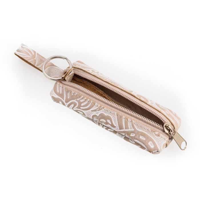 Футляр для ключей, размер 4,5х12,5 см, н/к, бежевый пион