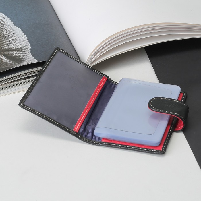 Футляр-визитница вертикальная, 1 ряд, 24 карт, с хлястиком, цвет чёрный
