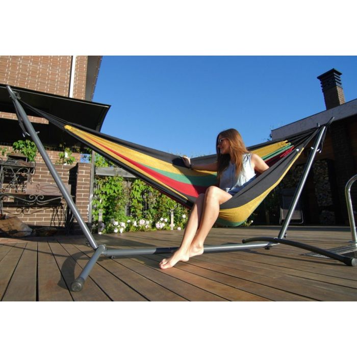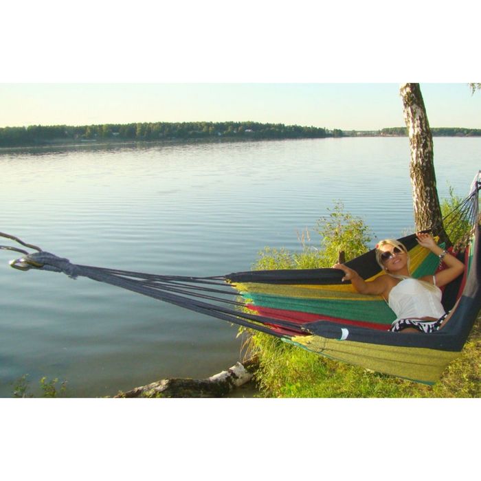 Главные преимущества гамака: мобильность и простота в эксплуатации. Его можно использовать на даче и брать с собой на природу. В свёрнутом виде он занимает не много места. Изделие изготовлено из высококачественного хлопка. Это прочный, комфортный для тела и гипоаллергенный материал, который хорошо впитывает влагу.