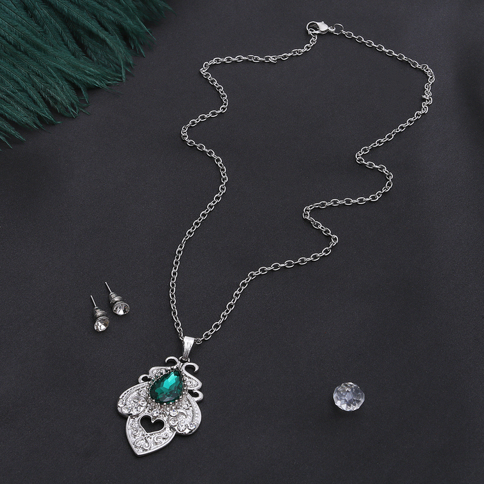 Ни один стиляга не будет выглядеть современно без искусно подобранных украшений, которые завершат его образ! Бижутерия — это современная недорогая альтернатива изделиям из золота и прочих драгоценных металлов. Гарнитур 2 предмета: серьги кулон "Ажур" вивальди, цвет бело-зелёный в серебре, 50 см — это то, что добавит вам шарма!