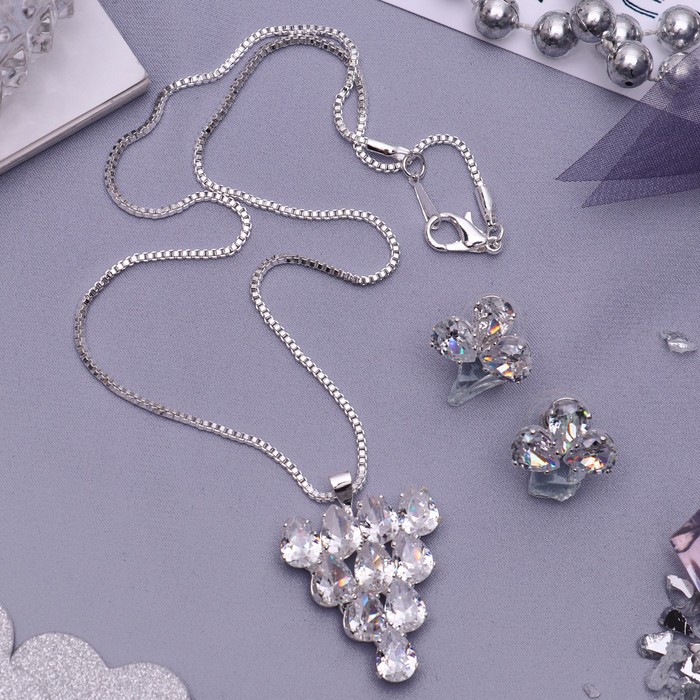 Гарнитур 2 предмета: серьги, кулон "Циркон" изыск, треугольник, цвет белый в серебре, 45 см 372053