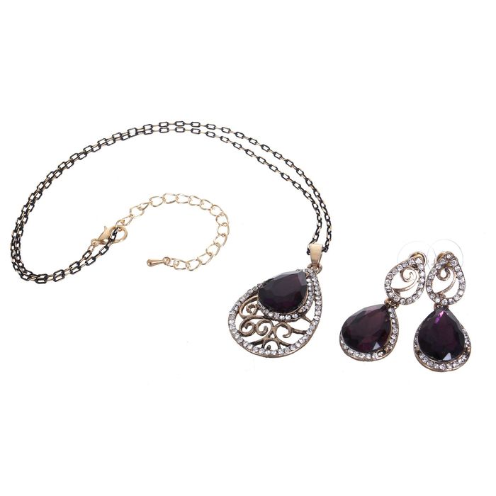 Ни один стиляга не будет выглядеть современно без искусно подобранных украшений, которые завершат его образ! Бижутерия — это современная недорогая альтернатива изделиям из золота и прочих драгоценных металлов. Гарнитур 2 предмета: серьги, кулон "Капля" крупная, цвет бело-фиолетовый в чернёном золоте, 45см — это то, что добавит вам шарма!