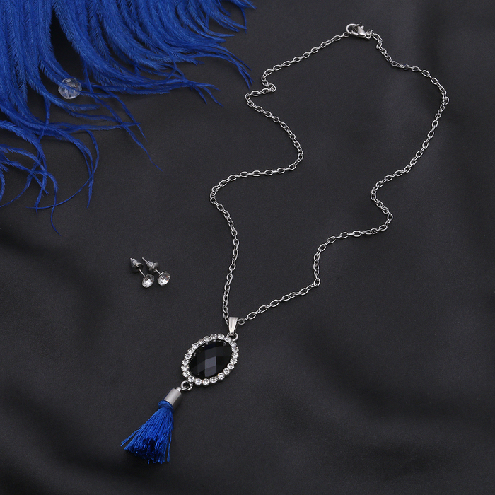 Ни один стиляга не будет выглядеть современно без искусно подобранных украшений, которые завершат его образ! Бижутерия — это современная недорогая альтернатива изделиям из золота и прочих драгоценных металлов. Гарнитур 2 предмета: серьги кулон "Кисть" овал, цвет чёрно-синий в серебре, 50см — это то, что добавит вам шарма!