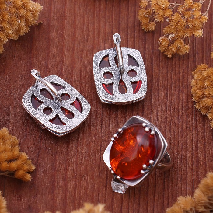 Ни один стиляга не будет выглядеть современно без искусно подобранных украшений, которые завершат его образ! Бижутерия — это современная недорогая альтернатива изделиям из золота и прочих драгоценных металлов. Гарнитур посеребрение 2 предмета:серьги, кольцо "Янтарь" латте, цвет коричневый, 18 р-р — это то, что добавит вам шарма!