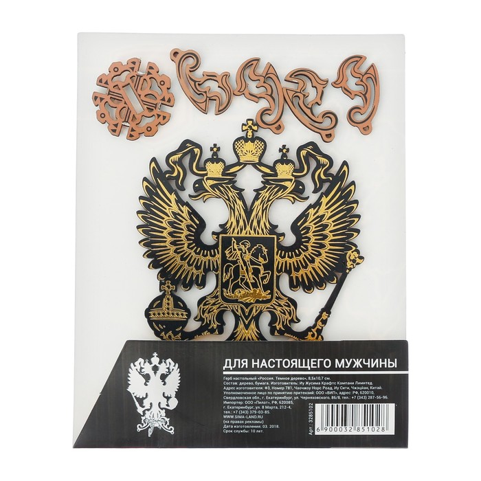 Герб настольный "Россия. Темное дерево", 8,5 х 10,7 см