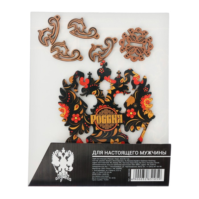 Герб настольный "Россия. Узор", 8,5 х 10,7 см