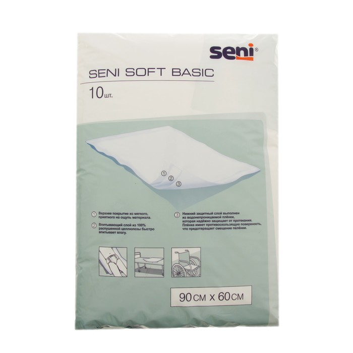 Гигиеническая пеленка Seni Soft Basic, р-р 90х60, 10 шт