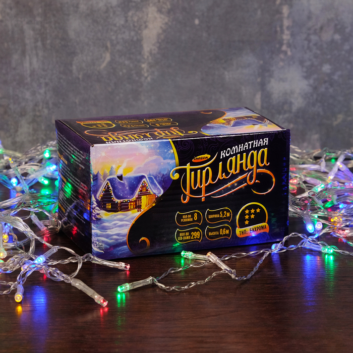 Гирлянда "Бахрома" УМС вилка, Ш:5,2 м, В:0,6 м, Н.С. LED-299-220V, контр. 8 р. МУЛЬТИ