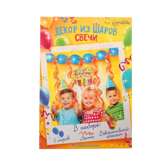 Гирлянда из воздушных шаров "Свечи", набор: 5 линколунов, лента, декор