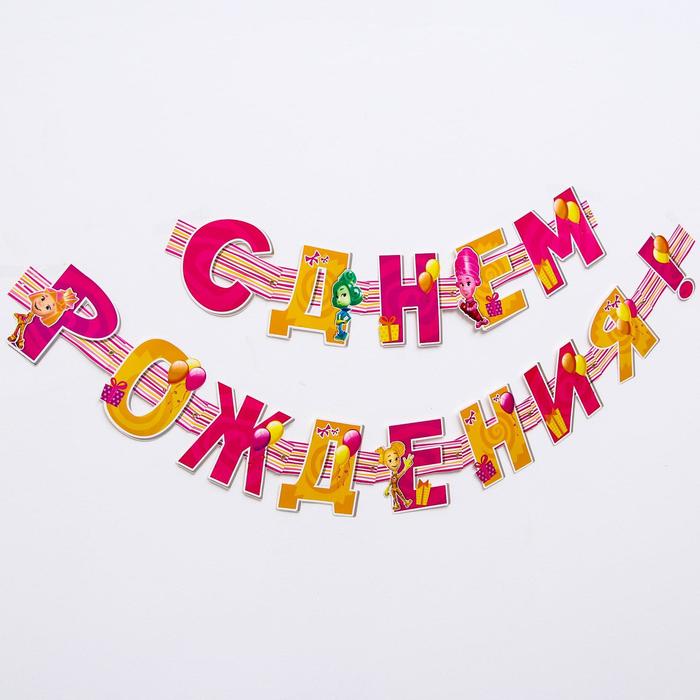 Гирлянда на люверсах ФИКСИКИ "С Днем Рождения!" (для девочки), дл. 210 см
