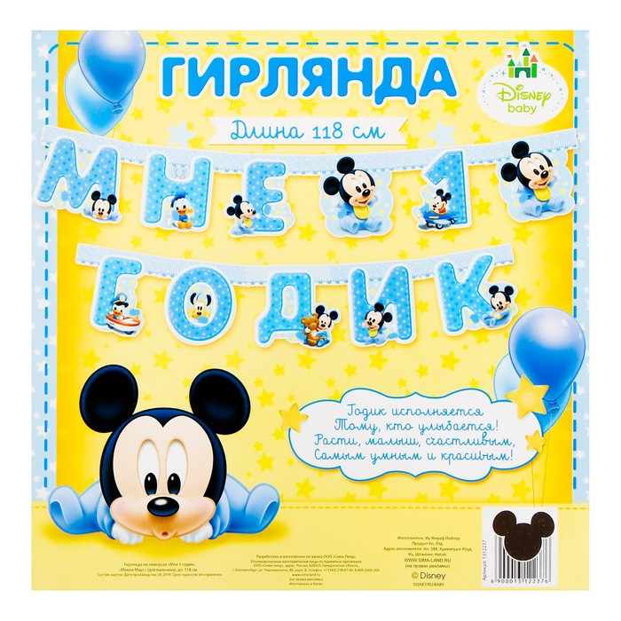 Гирлянда на люверсах "Мне 1 годик", Микки Маус