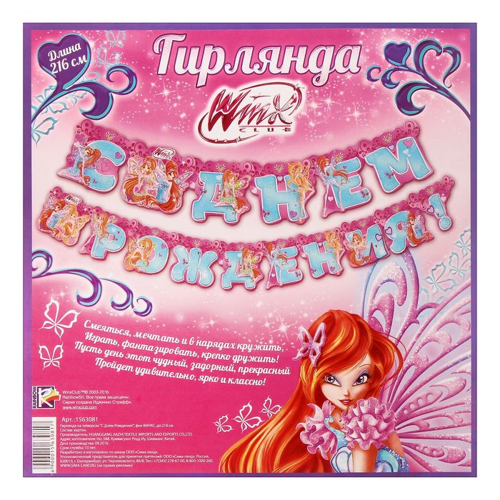 Гирлянда на люверсах "С Днем Рождения!", феи ВИНКС