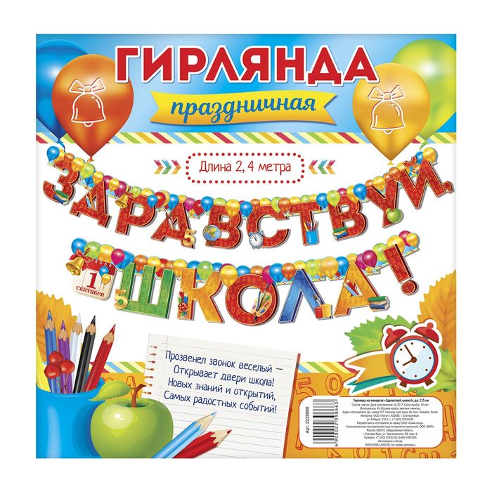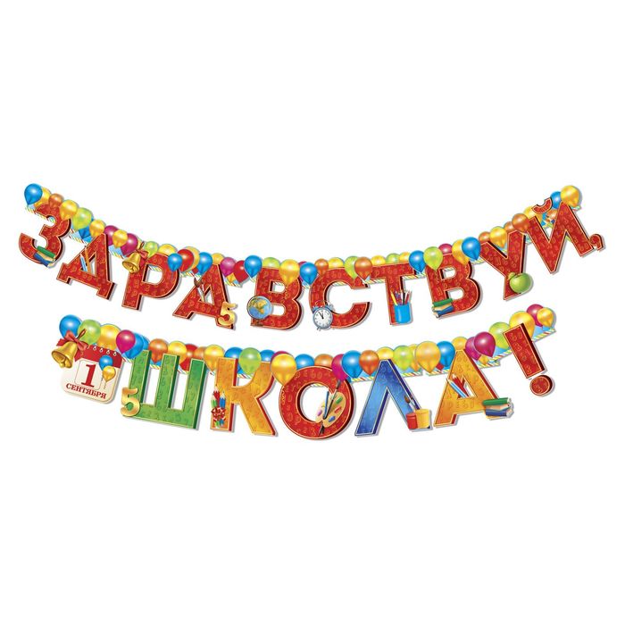 Гирлянда на люверсах "Здравствуй, школа!" — прекрасный аксессуар для украшения комнаты или зала! Она станет отличным дополнением любого праздника. Буквы скреплены с помощью люверсов, что позволяет свободно трансформировать гирлянду. На лицевой стороне напечатана красочная надпись. Аксессуар легко крепится на стену или дверной проём с помощью клейкой ленты или кнопок.