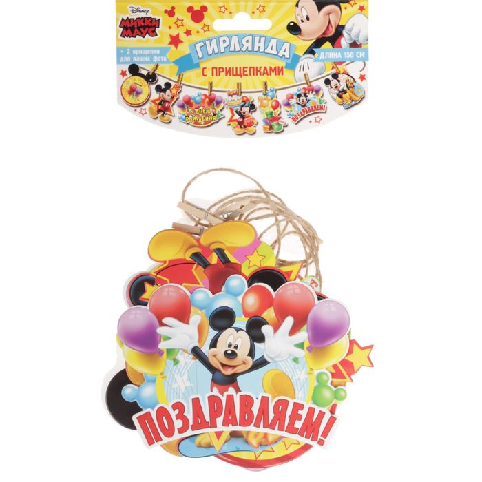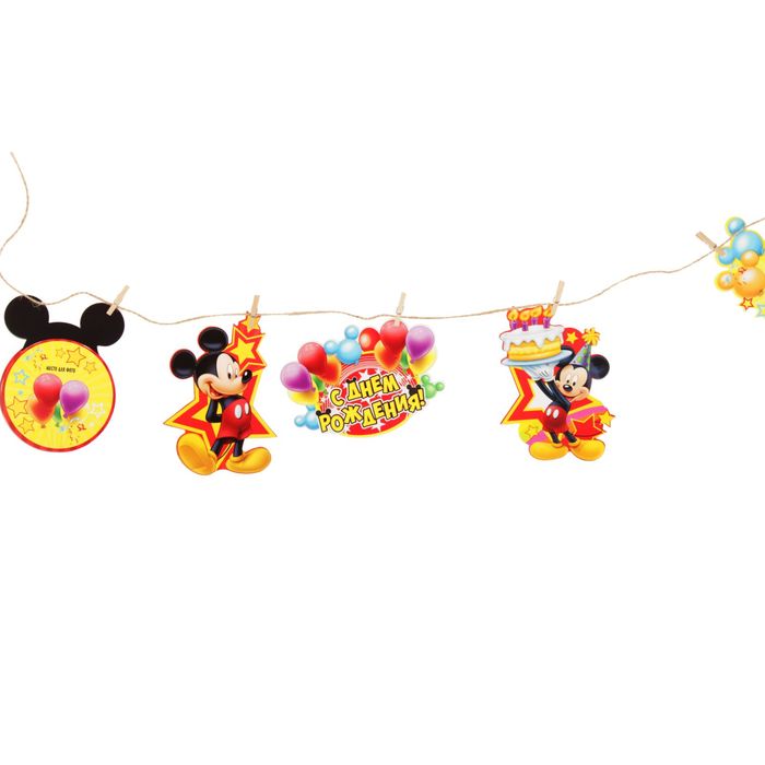 Гирлянда на прищепках "С Днем Рождения!", Микки Маус и друзья