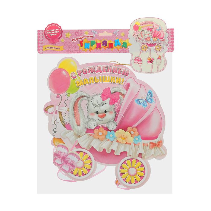 Гирлянда-плакат с подвесками "С Рождением малышки"